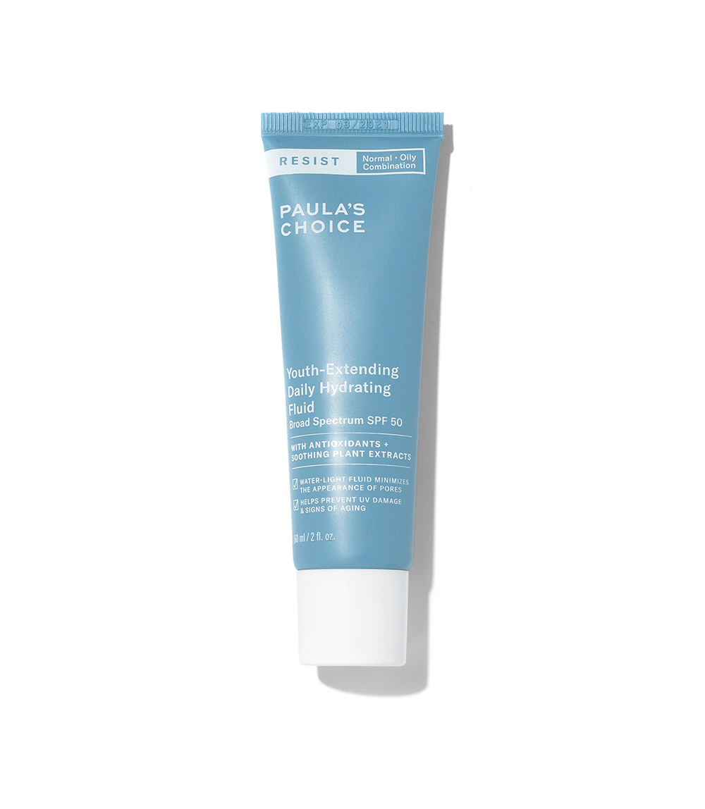 Get the most out of a daily SPF with Paula’s Choice Resist Hydrating Fluid SPF 50, an ultra-light hydrating skincare formula that provides UV protection with a silky, satin-matte finish.